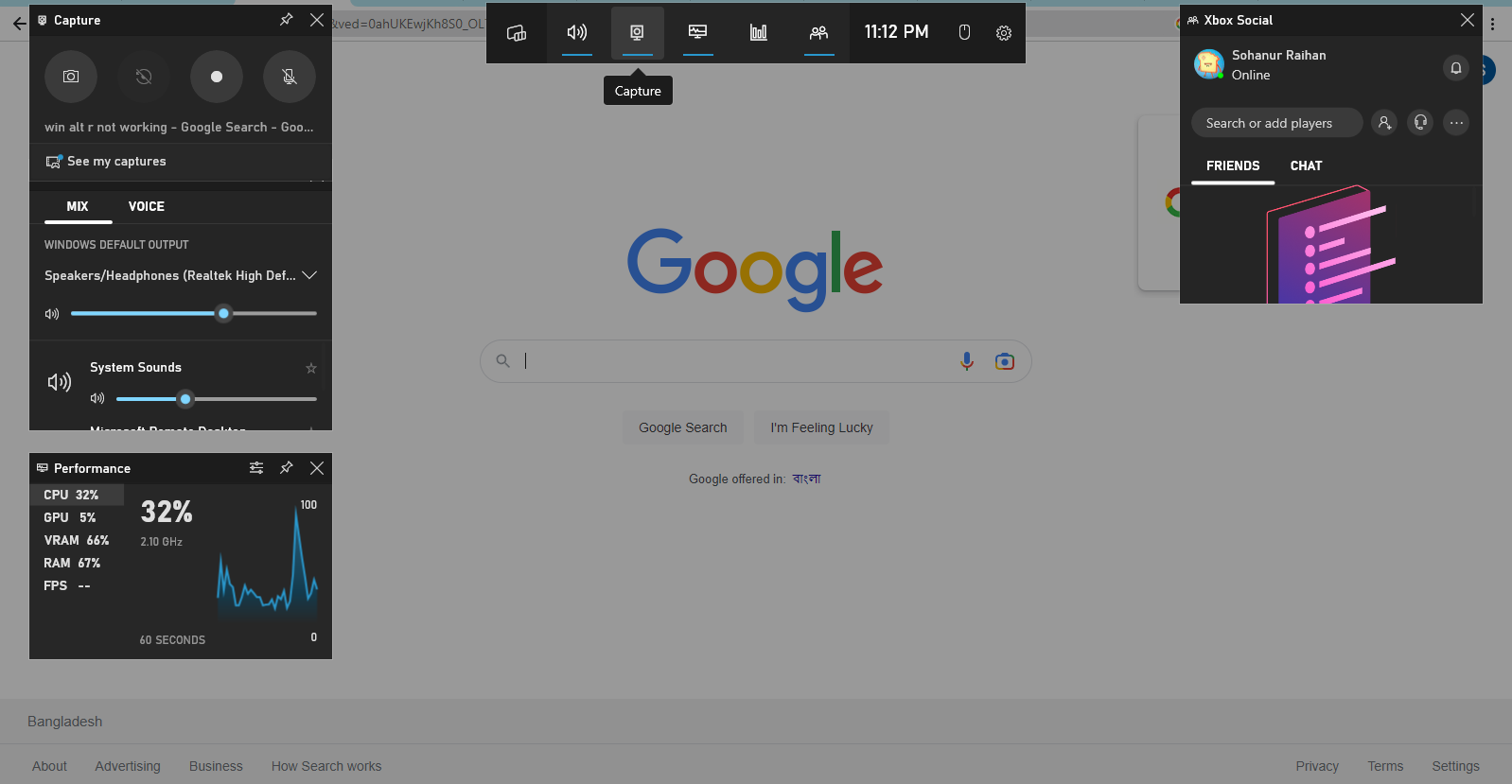 প্রেস করুন Win+G, আপনি গেমবার দেখতে পাবেন এখান থেকে আপনার স্ক্রিন রেকর্ডিং শুরু করুন।