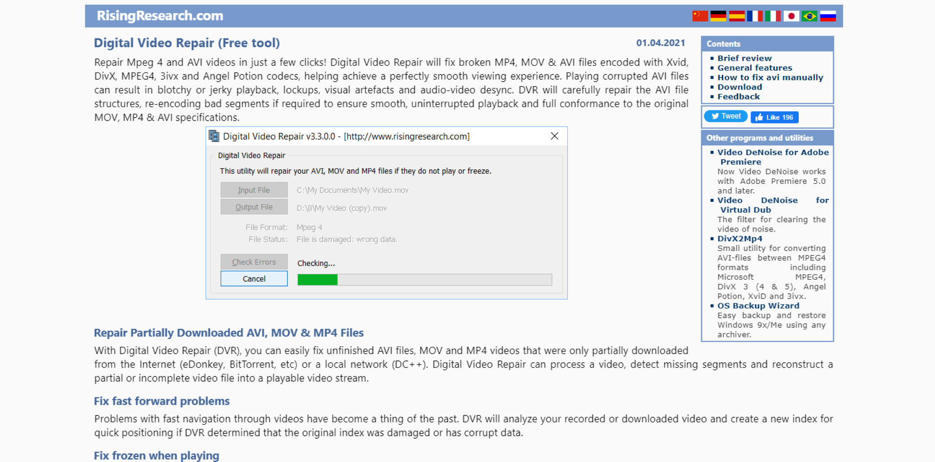 অফিসিয়াল ওয়েবসাইট @ Digital Video Repair