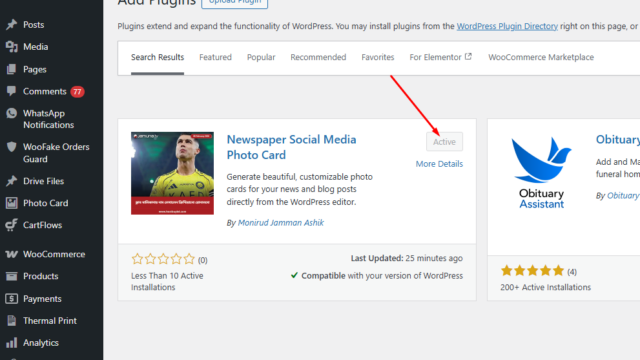 ১. প্রথমে আপনার ওয়ার্ডপ্রেস ড্যাশবোর্ড থেকে Plugins > Add New অপশনে যান। ২. সার্চ বক্সে "Newspaper Social Media Photo Card" লিখে সার্চ করুন অথবা সরাসরি ওয়ার্ডপ্রেস ডিরেক্টরি থেকে প্লাগিনের জিপ ফাইল ডাউনলোড করে আপলোড করুন। ৩. প্লাগিনটি ইন্সটল করে অ্যাক্টিভেট করার পর আপনার ড্যাশবোর্ডে Settings -> Photo Card অপশনে যান। ৪. সেটিংস পেজ থেকে আপনার ওয়েবসাইটের লোগো, কালার ও ব্যাকগ্রাউন্ড পছন্দমতো সেট করে সেভ করে নিন। ৫. এবার আপনি যেকোনো টিউন লিখতে বা এডিট করতে গেলে টাইটেলের ঠিক নিচেই একটি নতুন বাটন দেখতে পাবেন। সেখানে ক্লিক করলেই আপনার কাঙ্ক্ষিত ফটো কার্ডটি তৈরি হয়ে ডাউলোড হয়ে যাবে!