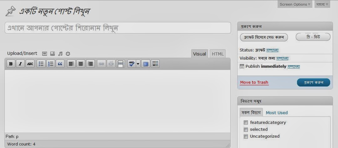 নতুন পোস্ট পেজ অনুবাদ করা হয়েছে এভাবে