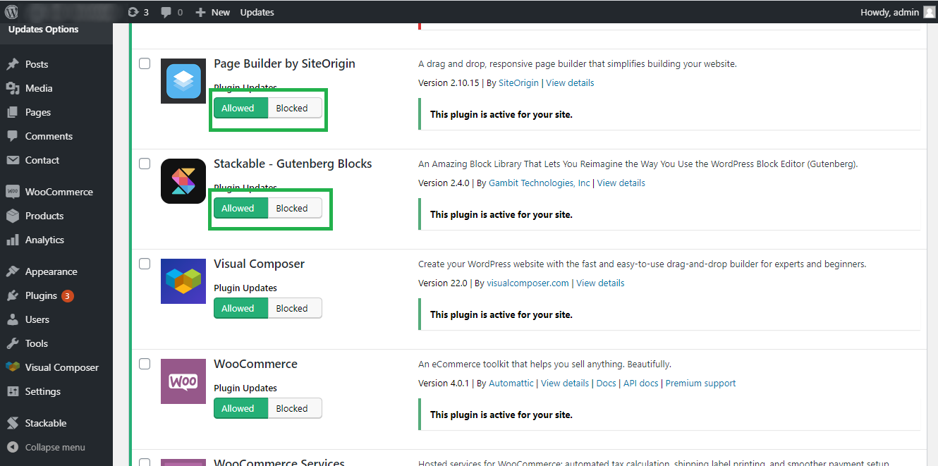 আপনি যদি আলাদাভাবে শুধু মাত্র প্লাগ-ইন গুলোর আপডেট অফ করতে চান তাহলে Plugins ট্যাবে ক্লিক করুন। আপনি এখানে আপডেট Allowed বা Blocked করতে পারবেন।