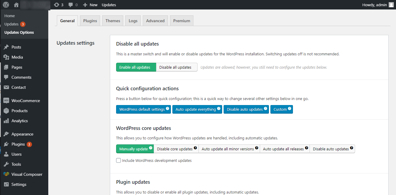 Easy Updates Manager একটি ওয়ার্ড-প্রেস প্লাগ-ইন যা দিয়ে আপনি ওয়ার্ড-প্রেসের আপডেট বন্ধ করতে পারবেন, আপডেটের নোটিফিকেশন ডিজেবল করার পাশাপাশি, Core, থিম, প্লাগ-ইন, ল্যাংগুয়েজ ফাইলের আপডেট ব্লক করে দিতে পারবেন। এর ফ্রি পেইড দুইটি ভার্সন থাকলেও ফ্রি ভার্সন দিয়েই জরুরী কাজ গুলো করে ফেলা যায়।