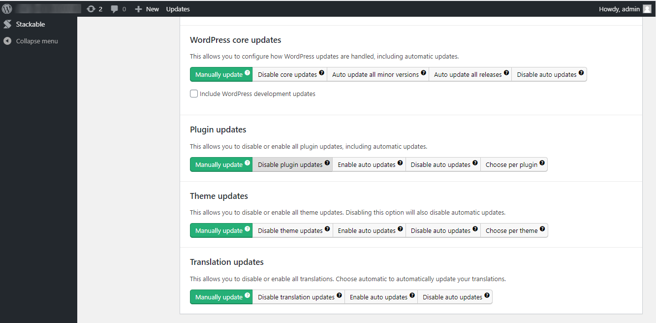 এখানে আপনি নিজের ইচ্ছে মত সেটিং করে নিতে পারবেন। আপনি যখন এই Plugin ইন্সটল দেবেন তখন Control Panel এ নতুন একটি অপশন আসবে Update Options নামে চাইলে এখান থেকে Easy Updates Manager এ প্রবেশ করতে পারেন।