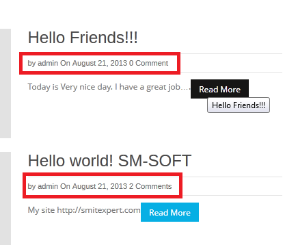 এই ছবিটিতে by, on , Comment এবং Read More টাও ইংরেজিতে । িআমি আগেই বলেছিযে আমরা আজ এই গুলি ইংরেজি থেকে বাংলা করবো তাও আবার কোন প্লগিন ব্যবহার না করে । 🙄
