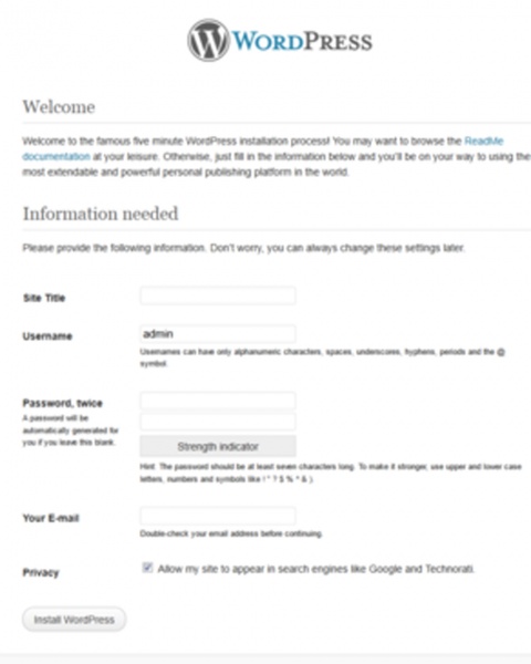 এবার আমার পছন্দমত user name , password , email দিয়ে install wordpress এ ক্লিক করলাম । (wordpress admin panel এ প্রবেশ করতে এই user name , password লাগবে )