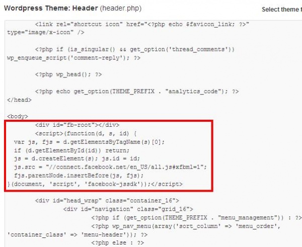 এখন আপনি নিচের মত ২ টি কোড পাবেন । প্রথম কোডটি header.php তে <body> এর ঠিক নিচে যোগ করুন ।