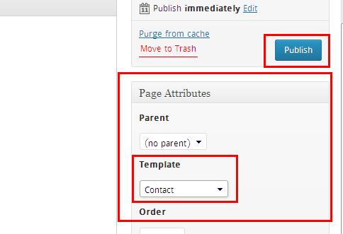 এবার dashboard- pages থেকে add new page এ যান । ডান পাশে page attributes এ Template হিসেবে Contact সিলেক্ট করুন । এবার একটি টাইটেল দিয়ে এটি পাবলিশ করুন ।