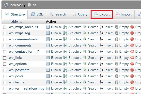 এরপর Export সিলেক্ট করুন তারপর Go বাটনে ক্লিক করুন। একটি .SQL ফাইল নামবে , এটি রেখে দিন।
