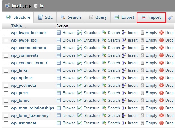 এখন নতুন ডোমেইনের জন্য একটি ডাটাবেজ তৈরী করুন, phpMyadmin এ গিয়ে আপনার নতুন তৈরীকৃত ডাটাবেজটি সিলেক্ট করুন, তারপর Import এ ক্লিক করুন।