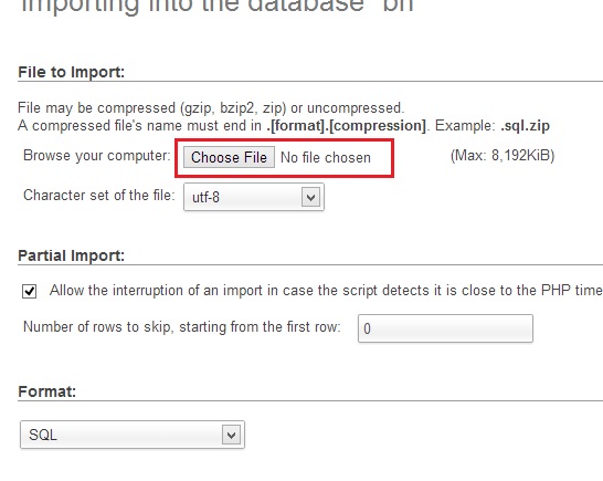 আগে যে ডাটাবেজ(.SQL) ফাইলটি নামিয়ে রেখেছিলেন তা সিলেক্ট করে Go বাটনে ক্লিক করুন।