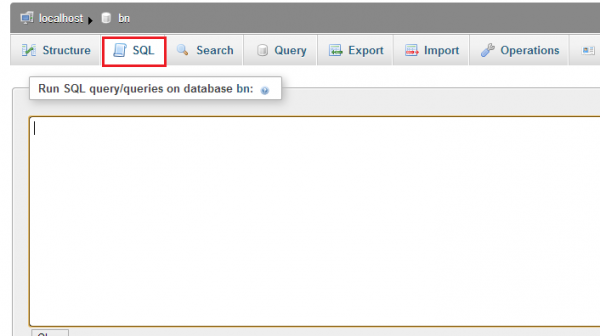 এখন Import হয়ে গেলে আবার phpMyadmin থেকে নতুন ডাটাবেজটি সিলেক্ট করুন , তারপর SQL এ ক্লিক করুন।