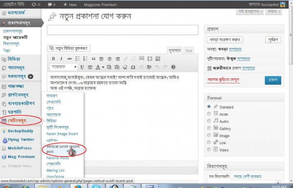 বর্তমানে ওয়েব সাইটের সংখ্যা কম না আর আমরা চাই নিজের ওয়েব সাইট কে সুন্দর করে তুলি আর ওয়েব সাইট কে সুন্দর করে তুলে ধরতে কিছু প্লাগইংস আছে তার মধ্যে রিসেন্ট পোষ্ট Scrolling প্লাগিংস একটি। এটি আমার স্মপ্রতিক পোষ্ট গুলো স্ক্রোলিং করে দেখাবে, কি রকম হবে তা দেখতে এখানে ক্লিক করুন আমার সাইডবারের ডান পাশে Recent post নামে দেখতে পাবেন। সর্বশেষ পোষ্ট গুলো নিচের দিক থেকে উপরের দিকে যাচ্ছে। plugins টি আপনারা এখান থেকে ডাউনলোড করুন।