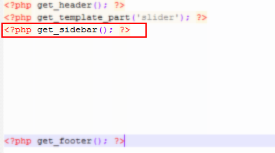 সাইডবারের জন্য প্রয়োজনীয় কোড অর্থাৎ sidebar.php যুক্ত করার জন্য যুক্ত করতে হবে<?php get_sidebar();?>