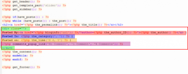 post এর তথ্য সমূহের কোড সমূহ একটা div ট্যাগের মধ্যে নেয়া হয়েছে। পরে ইচ্ছামতো class এর নাম দিয়ে স্ট্যাইল করা যাবে।