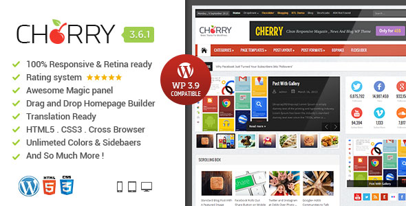 থিম টির নাম হল CherryMag - Responsive & Retina WordPress Magazine