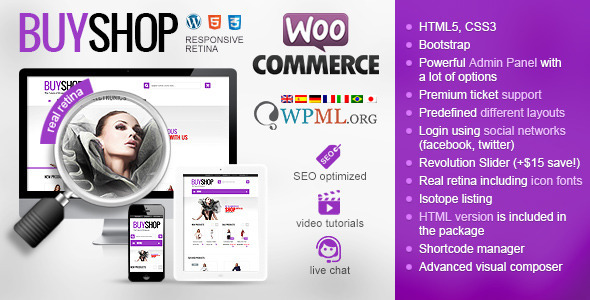 থিম টির নাম হল BuyShop v1.0.15 - Responsive WooCommerce WordPress Theme