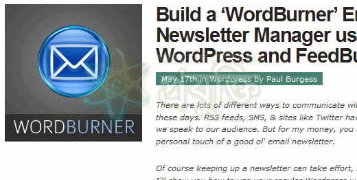 টিউটোরিয়ালটি আপনাকে দেখাবে কিভাবে ওয়ার্ডপ্রেস ও ফিডবার্নার যুক্ত করে আপনি সাধারণ একটি ই-মেইল নিউজলেটার ম্যানেজার তৈরি করতে পারবেন।