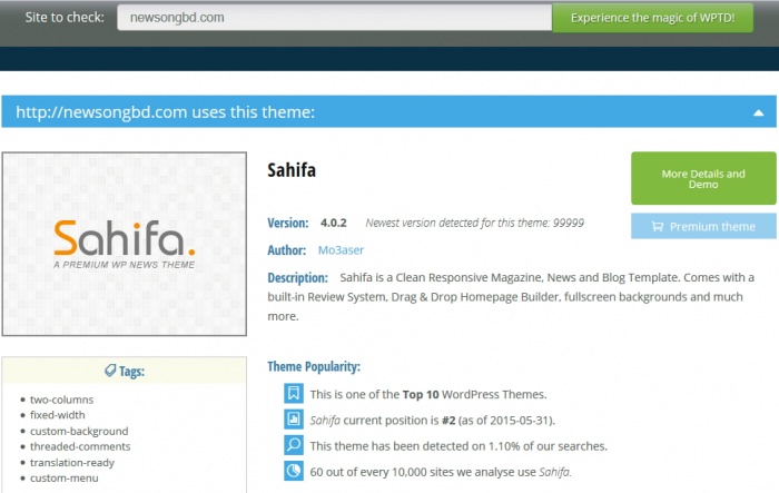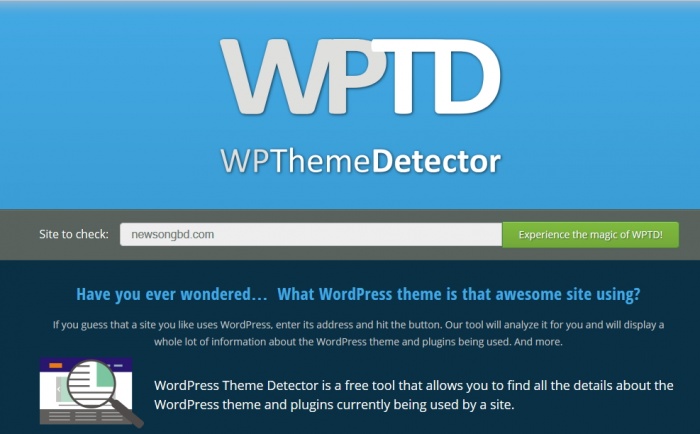 আমি আগেই বলছি যে উয়েবসাইটের থিম ও প্লাইন আপনি জানতে চাইবেন তা অবশ্যই ওয়ার্ডপ্রেস দিয়ে তৈরী হতে হবে এবং তা যদি কাস্টমাজ করা থাকে তবে সবকিছু ঠিকঠাক মত কাজ নাও করতে পারে এবং থিম যদি কাস্টম হয়ে থাকে তবে তাও ডিটেক্ট করতে নাও পারে তবে আমার দেখা ৮৫% সাইটে তা কাজ করে। তাই কাজ শুরু কারা যাক। আমি যেভাবে কাজটা দেখাব তা একটি উয়েবসাইটে মাধ্যমে দেখাব। হয়ত আপনার কেউ তা আগে থেকেই জানেন এবং এর্ডেস টি হচ্ছে http://www.wpthemedetector.com প্রথমে এই সাইটে যান এবং পরবর্তী ধাপ অনুসরন করুন।