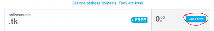 ৩। একটা নতুন পেজ আসবে। যদি আপনার নামে কোন সাইট না থাকে তাহলে দেখবেন কিছু ফ্রী TLDs আসবে। আপনি .tk এর "Get it Now!" ক্লিক করুন।