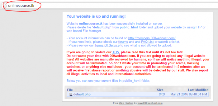 এখন আপনি আপনার ব্রাউজার এর new tab এ আপনার বানানো সাইটটির এড্রেস লিখে এন্টার দিন যদি কাজ সম্পূর্ণ হয়ে থাকে তাহলে নিচের মত একটা পেজ আসবেঃ