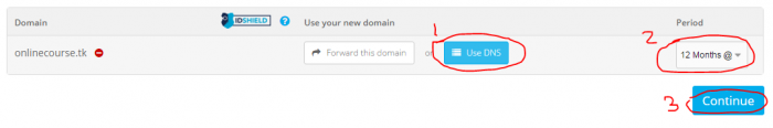 ৫। এখন "use DNS" & "12 Month @ FREE" সেট করে "Continue" ক্লিক করুন।