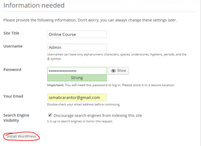 name, password আপনার ইচ্ছে মত দিতে পারেন শুধু কষ্ট করে কিচ্ছুক্ষন মনে রাখতে হবে।