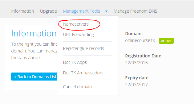 ৪। এখন আপনি Nameserver পেয়ে গেলেন। এই Nameserver দুইটা এখন ডোমেইন tab এ দিতে হবে।