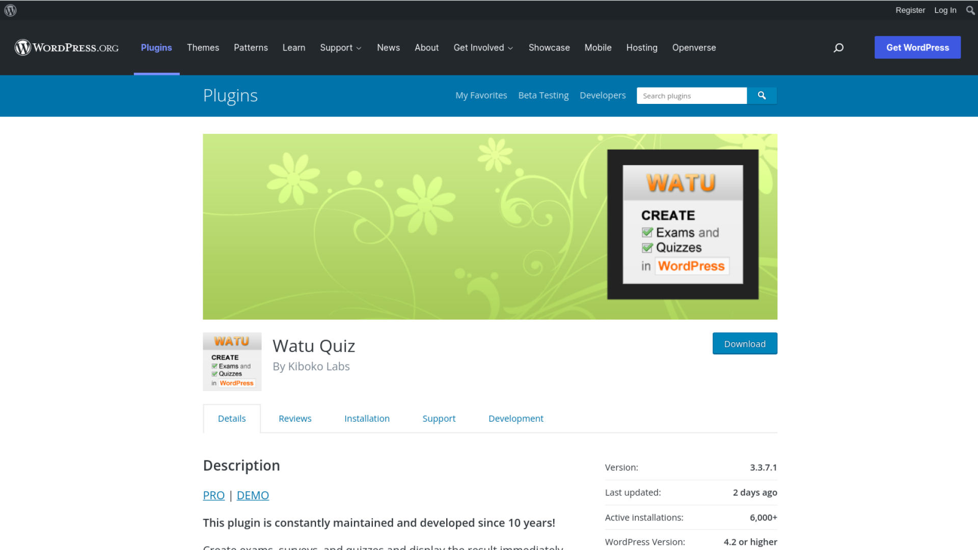 Watu Quiz প্লাগ-ইনটি ইন্সটল করে আপনি অনলাইন এক্সাম, সার্ভে, কুইজ তৈরি করতে পারবেন এবং রয়েছে সাথে সাথে রেজাল্ট দেখার ব্যবস্থা। প্রতি আলাদা প্রশ্নের জন্য আলাদা ভাবে নাম্বার এসাইন করতে পারবেন। এক্সামের পরে এটি চমত্কার ভাবে গ্রেডিং করবে।