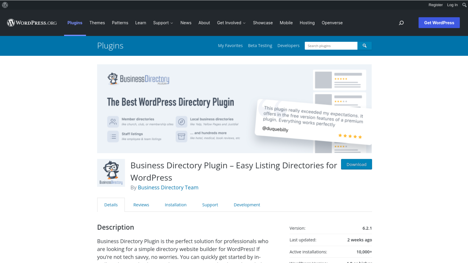 বিজনেস ডিরেক্টরি ওয়েবসাইটের জন্য সবচেয়ে জনপ্রিয়, সর্বোচ্চ ডাউনলোড করা প্লাগইন হচ্ছে Business Directory প্লাগ-ইনটি। এই প্লাগইন এর মাধ্যমে আপনি আপনার ওয়েবসাইটকে আরও ইন্টারেক্টিভ করে তুলতে পারবেন। ওয়েব সাইটে যুক্ত করতে পারবেন রিভিউ জেনারেট সেকশন। এটি দিয়ে আপনি রিয়েল এসেস্ট ডিরেক্টরি, চার্চ ডিরেক্টরি সহ আরও অনেক সার্ভিস ক্রিয়েট করতে পারবেন।