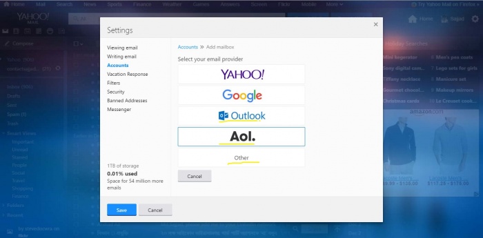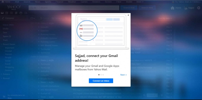 এখন থেকে ইয়াহুতে সব মেইল পড়ার সুযোগ করে দিল ইয়াহু, যা দিয়ে আপনি গুগোল, আউটলুক সহ আরো বিভিন্ন রকম ইমেইল একাউন্ট কানেক্ট করে এক ইমেইল থেকে সব মেইল পড়তে পারবেন। Yahoo মেইলে Gmail, Outlook, Aol Mail সহ আরো অনান্য মেইল একাউন্ট এড করার সুযোগ করে দিল ইয়াহু।