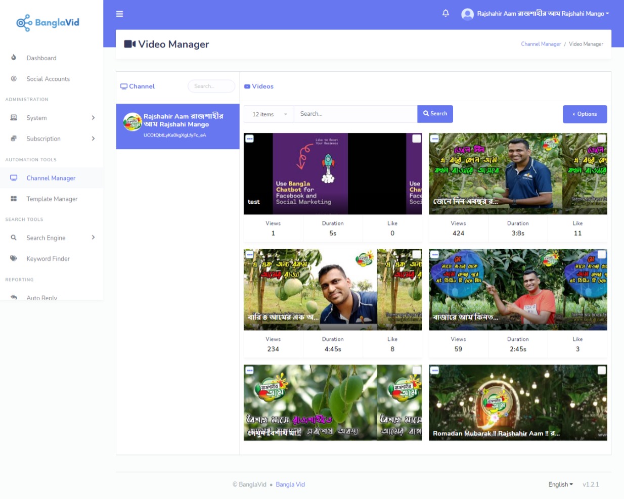 আজ এই টিউনে আপনাদের সাথে পরিচয় করিয়ে দিব বাংলাদেশের প্রথম ইউটিউব মার্কেটিং টুলস যা আপনার ইউটিউব চ্যানেল কে করবে অটোমেশন। যেমন আপনার ভিডিওতে কেউ কমেন্টস করলে অটো সেই কমেন্টস এ রিপ্লাই হয়ে যাবে। আপনার চ্যানেল অটোমেটিক্যালি আপনার চ্যানেলের রিলেটেল চ্যানেলের ভিডিওতে (কি ওয়ার্ড বেজ) গিয়ে টিউমেন্ট করবে। এম আরো চমতকার চমৎকার ফিচার আছে এই টুলসে। আর সেই টুলসের নাম বাংলা ভিড। এখনি ট্রাই করতে সাইনাপ করুন। এটি এখন সম্পুর্ন ফ্রিতে ব্যবহার করতে পারবেন।