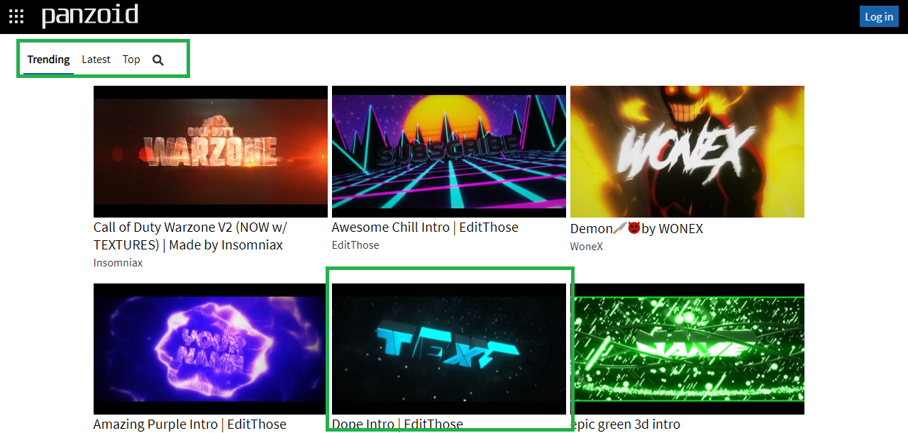 এখানে কয়েকটা অপসন রয়েছে যেমন Trending Latest Top। এই অপসন গুলোতে আলাদা আলাদা ইন্ট্রো রয়েছে। কোথাও বর্তমানে যেটা সবচেয়ে জনপ্রিয় সেটা রয়েছে। আবার কোথাও সব সময়ের জনপ্রিয় গুলো রয়েছে। যেকোনো একটা অপশনে গিয়ে আপনার পছন্দ মতো একটা ইন্ট্রো সিলেক্ট করে তার উপর ক্লিক করুন। এখানে ওয়েবসাইট এ শুধু আপনি ইন্ট্রো না outro ও পাবেন। যেটা ভিডিওয়ের শেষে দেখতে পাই। এই ওয়েবসাইট এর একটি ভালো দিক হলো আপনি এখানে সব কিছু তৈরী করা পেয়ে যাবেন। আপনাকে শুধু সেটা কিছুটা পরিবর্তন করতে হবে। তাহলেই হয়ে যাবে আপনার কাঙ্খিত ইন্ট্রোটা। ইন্ট্রো সিলেক্ট করে ক্লিক করার পরে নিচের মতো একটি পেজ দেখতে পাবেন।
