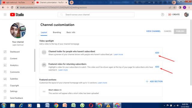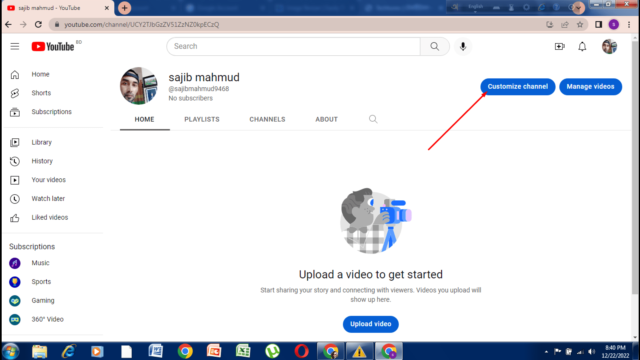 তারপর আপনি কাস্টমাইজ চ্যানেলে ক্লিক করবেন। এরপর আপনি ইউটিউব ক্রিয়েটরের স্টুডিওর ড্যাশবোর্ডে প্রবেশ করবেন।