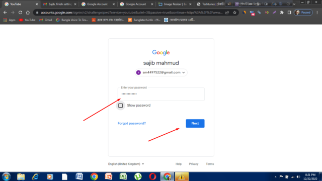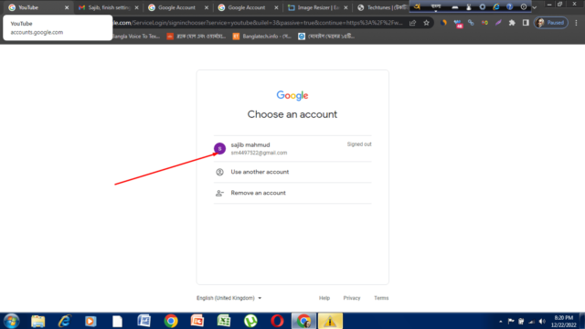 এরপর আপনি ইউটিউব ডট কম এ যাবেন। তারপর সবার উপরে ডানে সাইন ইন বাটনে ক্লিক করবেন। তারপরে দেখবেন গুগলের চুজ এন একাউন্ট অপশনটি আসবে। সেটির মাধ্যমে আপনি আপনার কাঙ্খিত ইমেইলটি দিতে পারেন অথবা নতুন যে ইমেইল আইডি খুলেছেন সেটা দিতে পারেন। আমি এইমাত্র যে নতুন ইমেইল আইডি ওপেন করলাম সেটি দিয়ে লগইন করছি। তারপর আপনি আপনার ইমেইলের পাসওয়ার্ডটি সঠিকভাবে দিয়ে নেক্সট এ ক্লিক করবেন। নিচে দেওয়া স্ক্রিন শটগুলো ধাপে ধাপে ফলো করুন।