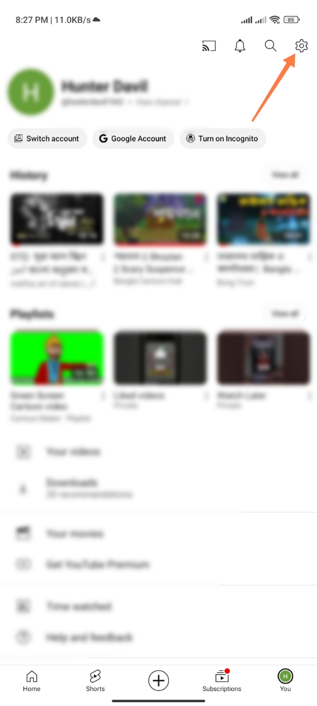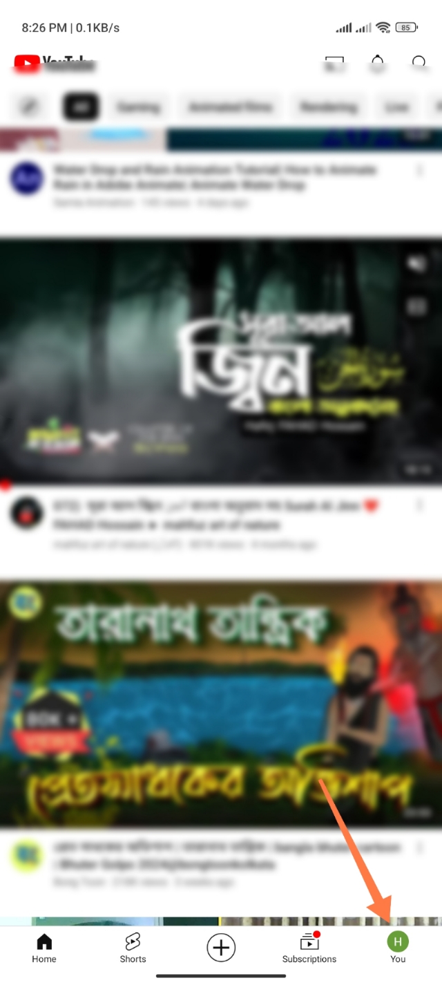 ১. কাজটি করার জন্য আপনারা আপনাদের ইউটিউব অ্যাপটি ওপেন করুন। তারপর অ্যাকাউন্ট অপশনে ক্লিক করুন।